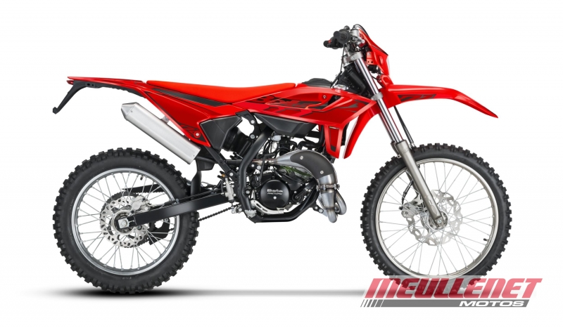 Moteur monocylindre 2 temps, 6 vitesses, refroidi par eau équipé d'un mélangeur d'huile (sauf RR 50 Racing). Boîte de vitesses avec de nouvelles fourchettes de sélection forgées : embrayage plus précis pour une conduite encore plus réactive et exaltante. Système de récupération des vapeurs d'essence conforme à la réglementation Euro 5+. Partie intégrante de l'esthétique du véhicule, il est développé pour améliorer la maîtrise du bruit conformément aux réglementations en vigueur. Nouveau châssis avec une géométrie repensée, pour une meilleure maniabilité et une plus grande souplesse de conduite. Boucle arrière en polymère technique qui intègre parfaitement les différents composants électriques, le boîtier de filtre et les bras en acier. Un design organique et moderne pour les grands. Bras oscillant plus long pour une plus grande stabilité de conduite et une meilleure traction. Amortisseurs revus au niveau de la course pour les versions enduro et du tampons de butée pour les versions motard. Nouvel échappement : compact, racing, digne d'une vraie moto. Nouveau système de verrouillage simple. Une clé pour le verrouillage de la direction / du démarreur, réservoir et selle. Plus de praticité et de sécurité. Nouveau feu arrière à LED : améliore la sécurité et la visibilité du véhicule. Freins : avant à disque Ø 260 mm, arrière Ø 220 mm. Nouveau réservoir de 6,5 l